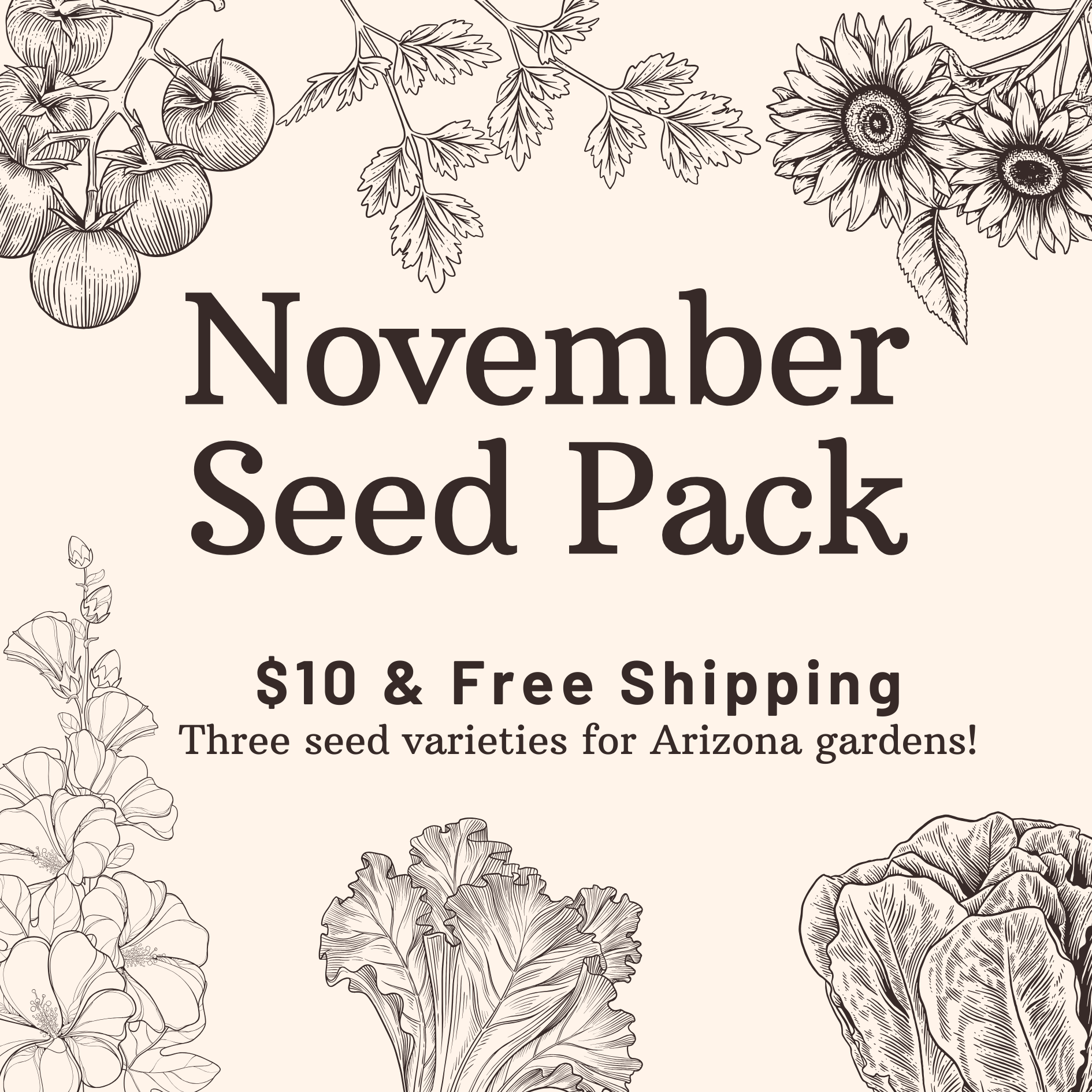 Growing a garden in the Phoenix valley has it's challenges! With a little care and know how, the most amazing gardens can thrive despite the harsh climate. Join the Fertile Desert club's subscription to receive seeds monthly that are appropriate to plant immediately upon delivery. No waiting for the proper season! Getting seeds planted every month ensures a beautiful garden year round, with new plants coming in while older ones reach the end of their lifecycle. I will be sending the seeds I am personally sewing in my own garden and you can follow along! Join me!